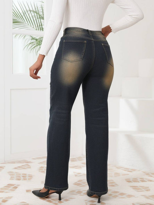 Cocolii jeans droit coton taille haute femme élégant vintage décontracté mode casual
