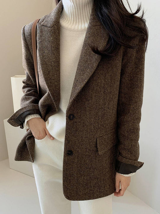 Cocolii blazer femme en laine chevrons poches col revers oversize chic décontracté manteau pour bureau automne