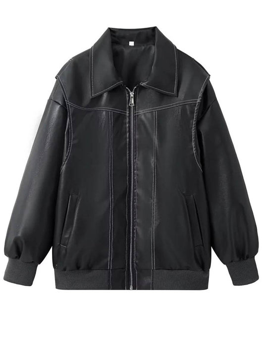 Cocolii veste motard simili cuir poches col revers manches longues femme élégant vintage décontracté oversized