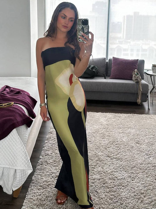 Cocolii robe longue en satin irrégulière imprimé à fleurie bustier dos nu sans manches femme vintage de plage
