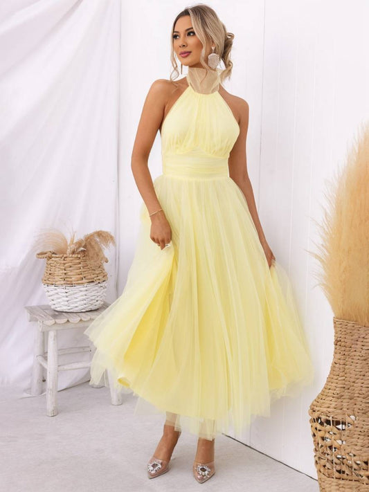 Cocolii longue robe trapèze licou découpes tutu en tulle noeud papillon sans manches femme doux élégant de soirée bal de promo