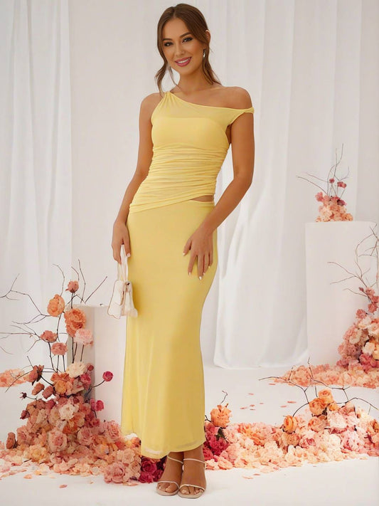 Cocolii robe longue tulle une épaule découpes sans manches femme élégant invité mariage robe de plage