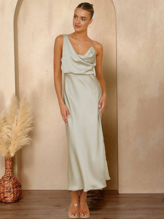 Cocolii longue robe en satin irrégulière v-cou col bénitier et dos nu sans manches élégant femme pour une soirée invité mariage