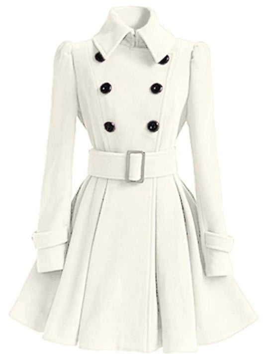 Cocolii Mantel Skater Trapez aus Wolle mit Gürtel und doppelter Knopfleiste eleganter Damenjacke