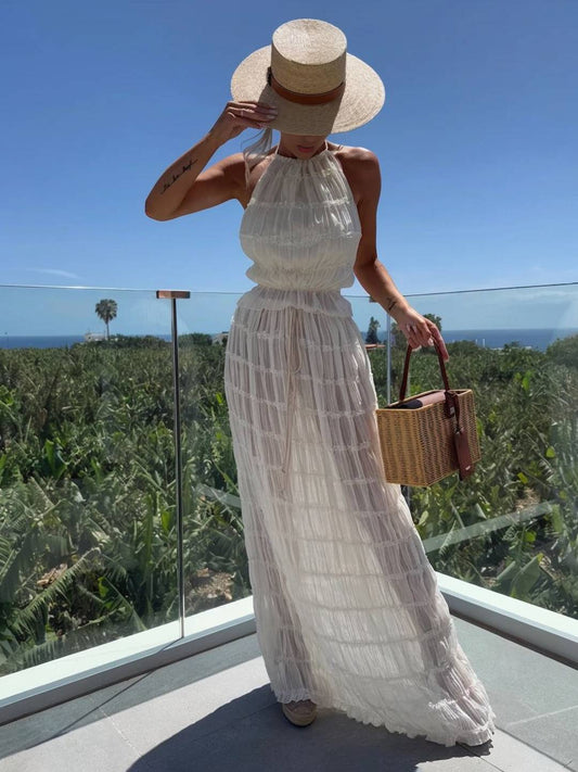 Cocolii ensemble avec longue jupe licou dos nu sans manches débardeur femme dou bohème simple décontracté deux pièces