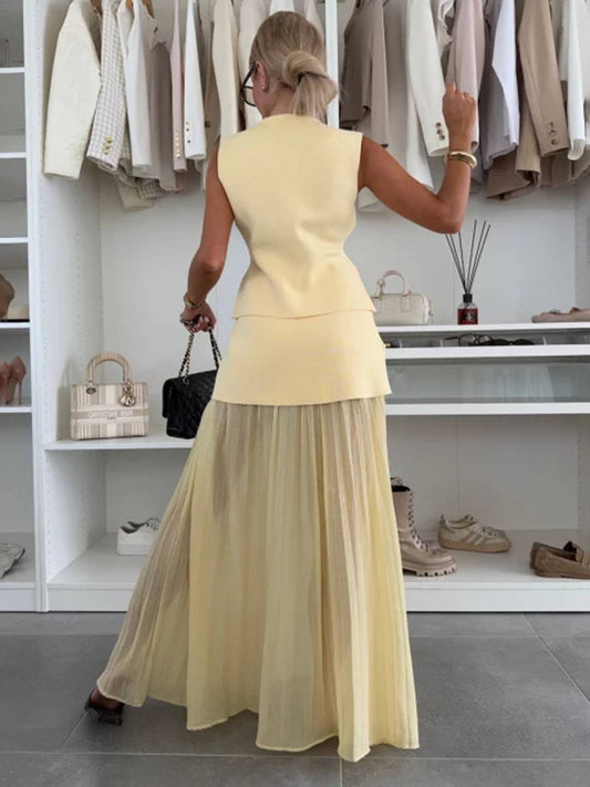 Cocolii tenu ensembles tailleur v-cou sans manches gilet et jupe tulle fluide décontracté chic pour vacances deux pièces