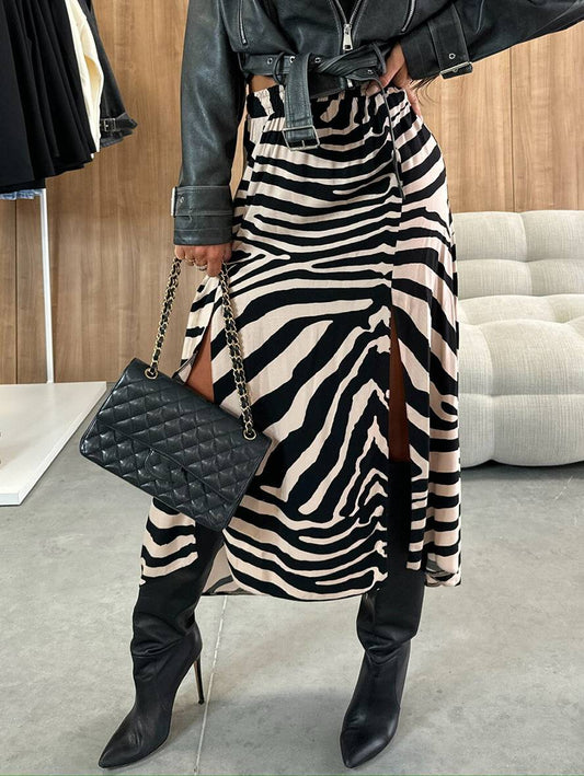 Cocolii longue jupe rayé léopard fendu le côté femme élégant décontracté mode