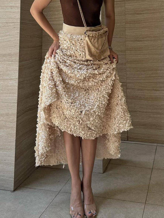 Cocolii jupe trapèze fleurie pétale fendu le côté femme élégant décontracté mode
