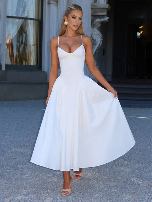 Cocolii lange Skaterkleid V-Ausschnitt rückenfrei mit dünnen Trägern Damen elegant vintage Audrey Hepburn Ballkleid Abschlussballkleid