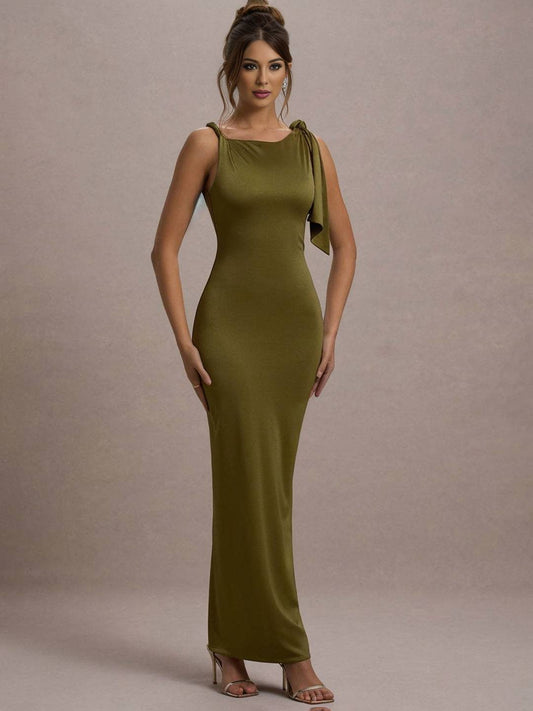 Cocolii langes, figurbetontes, ärmelloses Kleid für Damen mit geknoteten Details an den Schultern für einen eleganten Abend