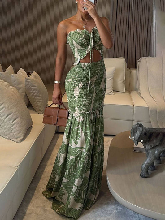 Cocolii langes Kleid mit Blumenmuster, taillierte Meerjungfrau-Schnitte, trägerloses Bustier, Neckholder, ärmellos, lässig, entspannt, Strandkleidung
