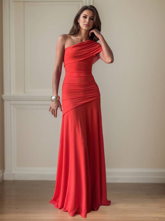 Cocolii lange Kleid Gast Hochzeit einfarbig fließend ärmellos elegant lässig Abschlussball Strandzeremonie ein Schulter