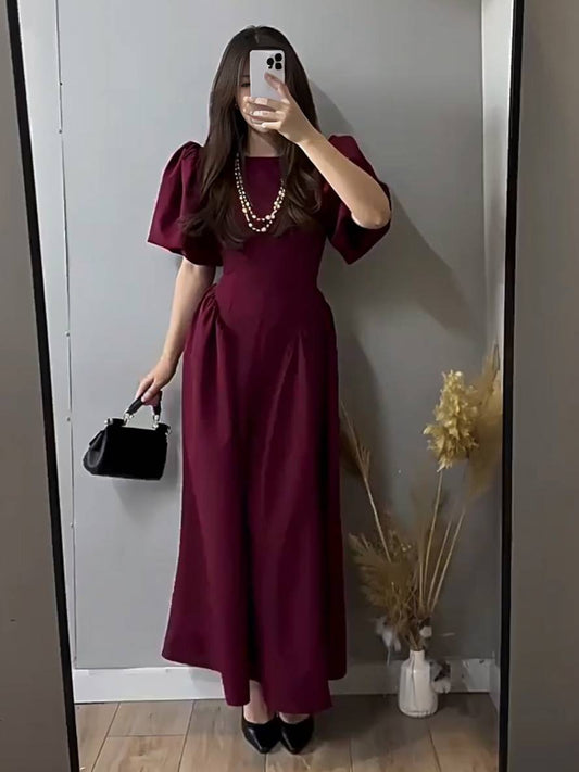 Cocolii langes Kleid mit Rundhalsausschnitt und Puffärmeln Damen elegant lässig Audrey Hepburn Abschlussball