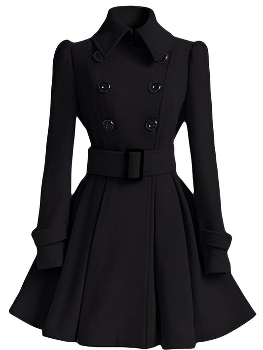 Cocolii mi-longue manteau en laine à volantée double boutonnage ceinture col revers femme élégant décontracté