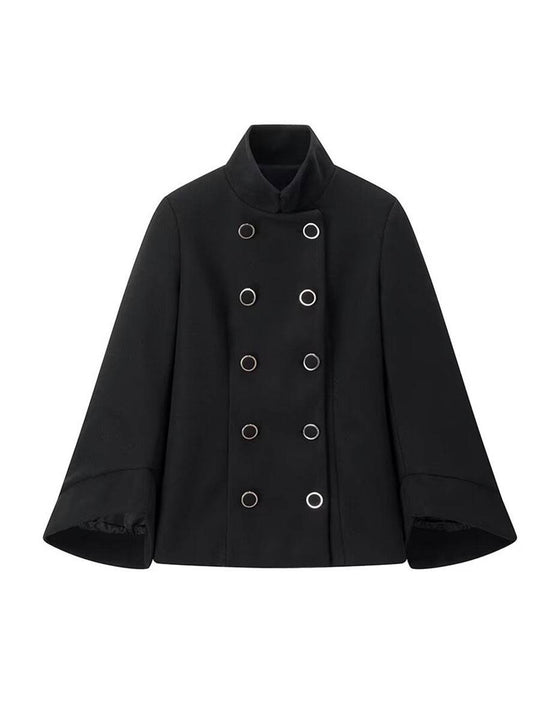 Cocolii mittellanger Poncho Mantel Damen Doppelknopf Stehkragen Fledermausärmel elegant Vintage Jacke Caban