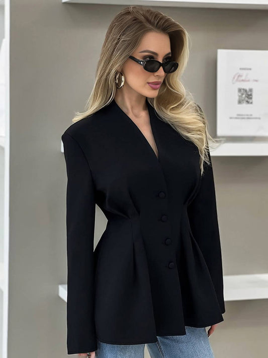 Cocolii schwarzer Blazer Damen tailliert V-Ausschnitt Knopfleiste lange Ärmel elegant lässig vintage Bürojacke