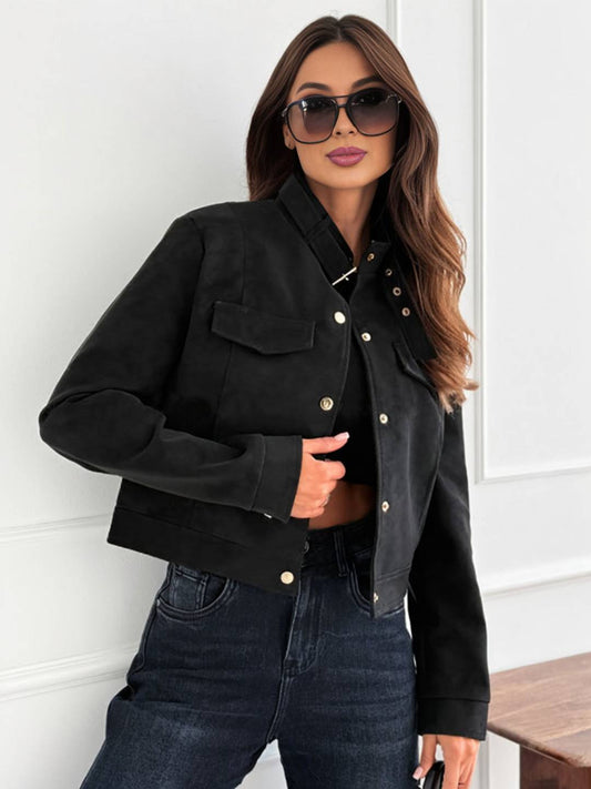 Cocolii Court Weste aus Wildleder für Damen mit Knopfleiste, Taschen, klobiger Schnalle, langen Ärmeln, lässige Jacke aus Wildlederimitat