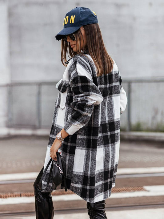 Cocolii mittellange Überhemd Damen kariert Taschen lange Ärmel Boyfriend-Stil oversized lässig vintage Jacke