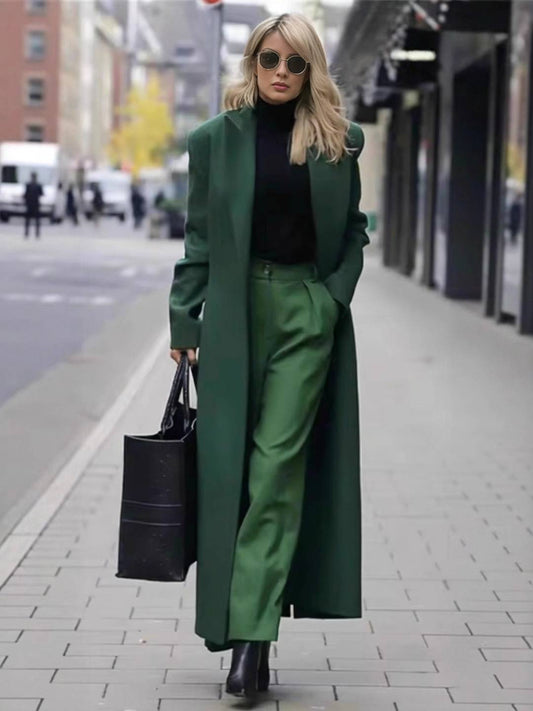 Cocolii langer Mantel Knöchel Frau Doppelknopf Reverskragen lange Ärmel elegant vintage gerade Jacke