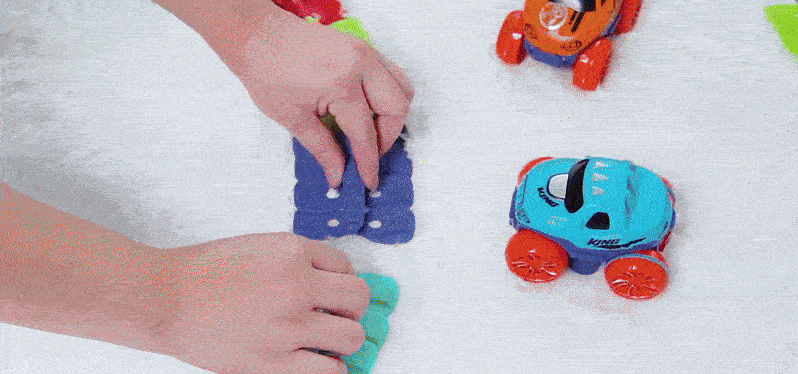 Faites-le démarrer de votre canapé pour descendre sur le sol tout en passant sur une pile de livres, la piste est adaptable ainsi que la voiture, votre enfant en sera fou !